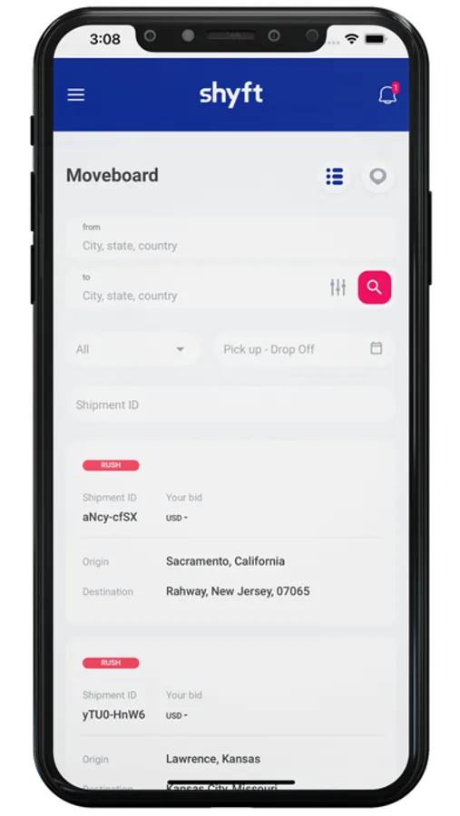Moving companies can instantly bid on thousands of moves, including qualified corporate leads and individual moves. ShyftX ensures that relocation shipments are posted hourly, and include size, distance and budget. Movers can filter moves by distance and size to find their ideal customer. Most moving companies book moves within 2 days of downloading the app.