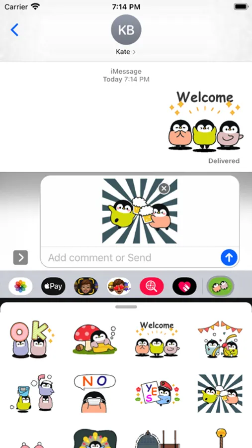 Fun and Cute with "Cute Penguin 9 stickers" pack. It is always ready to add more emotion to your text.