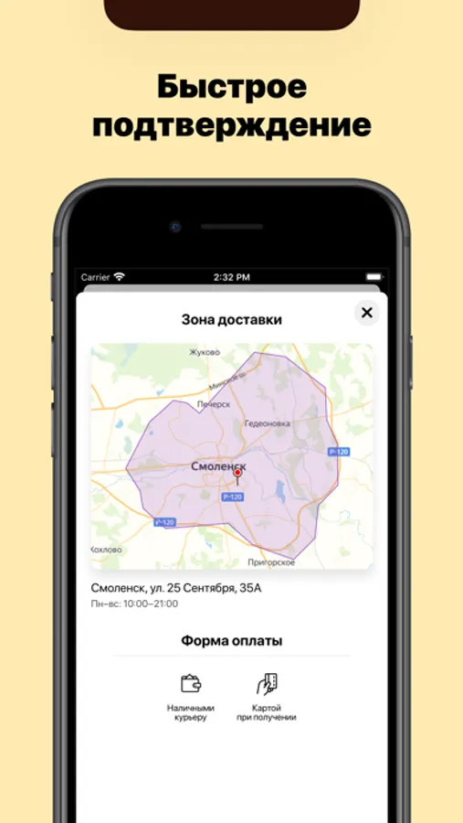 — Быстрый заказ с мгновенным подтверждением через приложение.