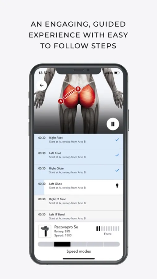 Visualise your recovery with a high-quality 3D model that helps you treat precisely the right muscles. You will also find suggestions for additional areas that will help treat the muscle groups you are focusing on, as well as attachment recommendations.