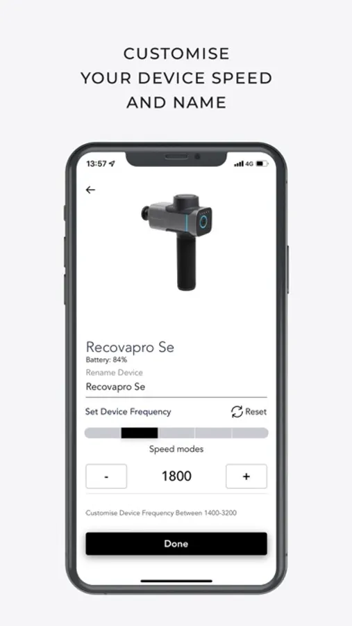 Seamlessly designed and straightforward to use, all the app's features can be explored with a single swipe, so you can easily control the app while using the Recovapro Massager. With feedback on speed control and applied force between 1400-3200 percussions per minute, your body can tell you what feels best.