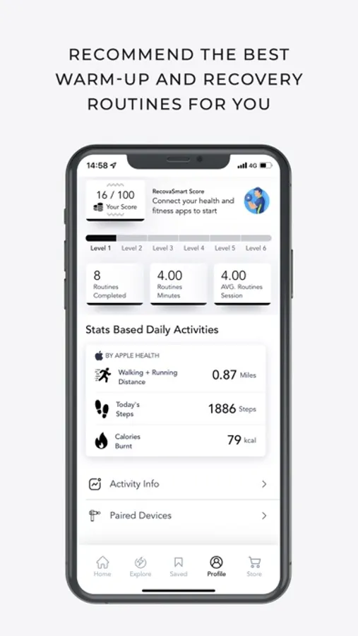 The RecovaSmart app by Recovapro learns from your real-time performance and activity, integrating with Strava and Apple Health to recommend self-directed, personalized wellness methods that can be used on your Bluetooth®-enabled devices.