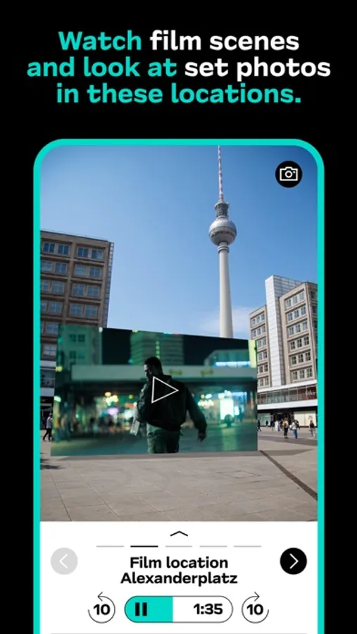 The app lets you look behind the scenes of film productions in the locations where they were filmed and listen to film-makers talking about their work. Watch scenes in the actual places they were shot and discover special features of Berlin's film sets. Use the app’s camera filters and make your own videos with an Eighties’ or silent film era look.