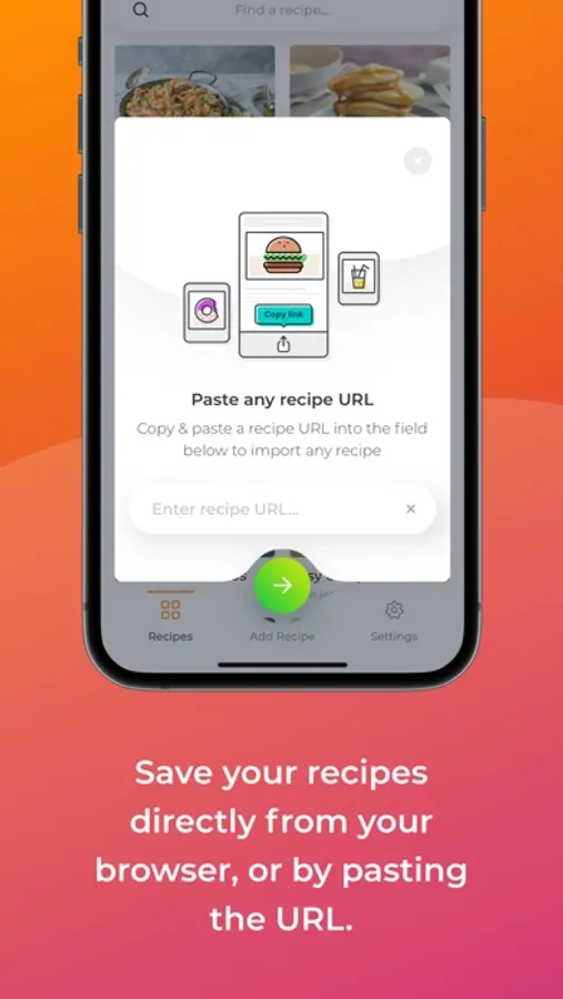 • Save directly from your mobile browser, or by pasting the recipe URL.