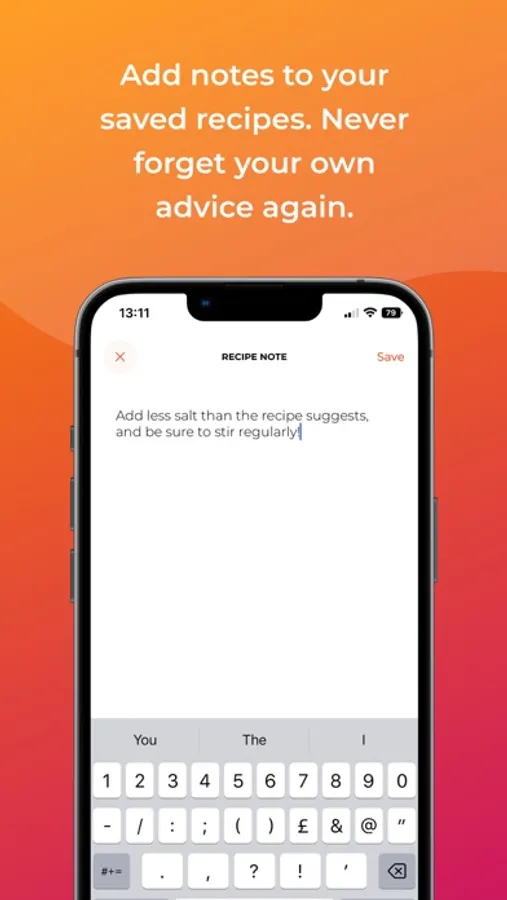 • Add notes to your save recipes. Never forget your own advice again!