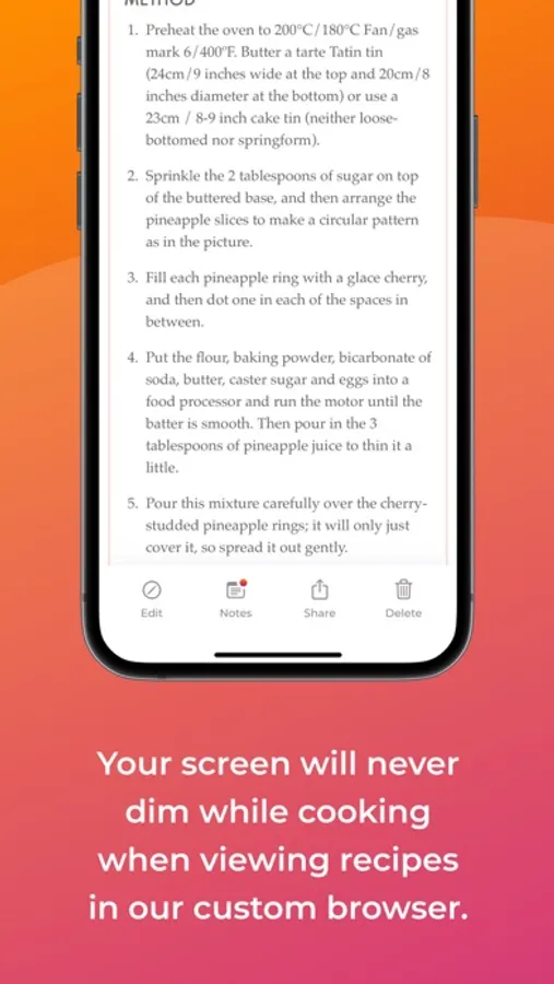 • Your screen will never dim while cooking when viewing recipes in our custom browser.