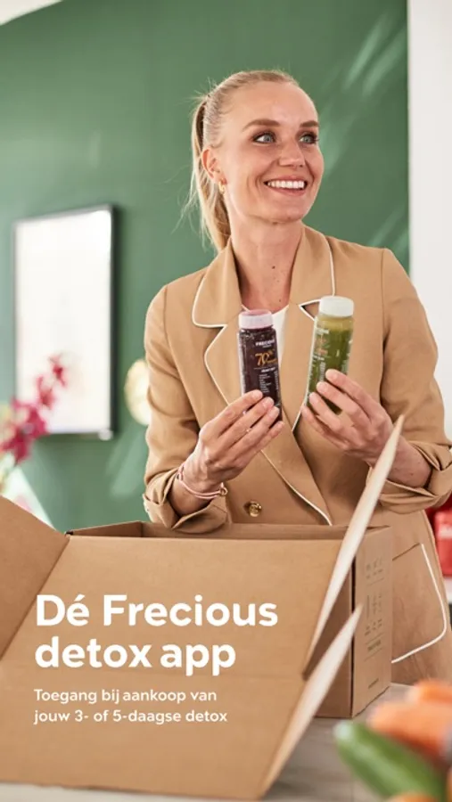 Detoxen met de Frecious Detox app, ontvang toegang bij aankoop van je 3- of 5-daagse detox. Het detox programma van Frecious helpt jou om je oude ongezonde eetgewoontes los te laten. Geef je lichaamseigen reinigingssysteem even rust en ga voor energie en focus. Een reset voor lichaam en geest, met persoonlijke begeleiding, incheck momenten én tips en tricks via de app. Succes met je Detox!