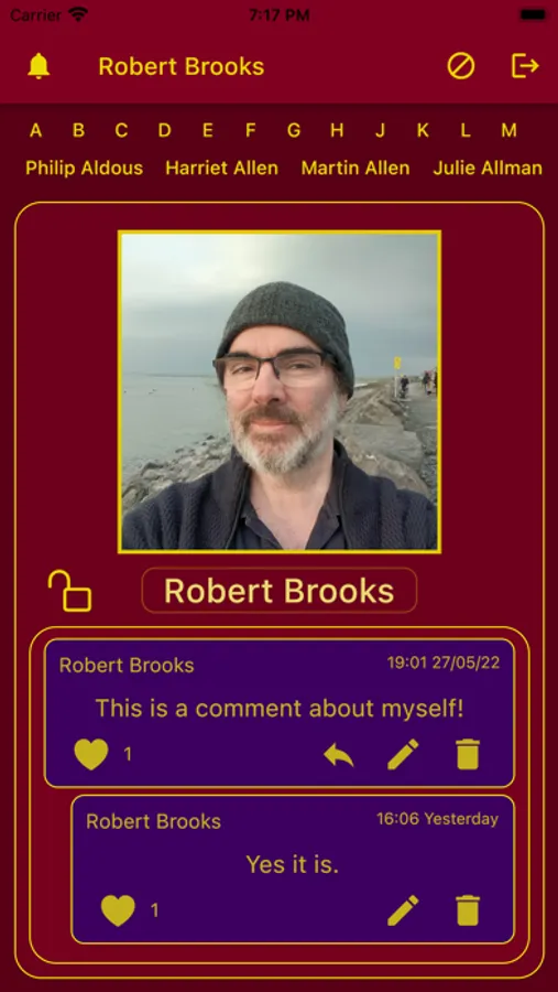 Each ex-pupil maintains a page which includes a profile picture, a bio, a comments section and more.