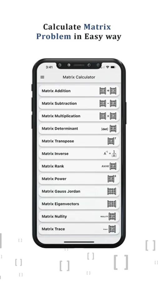 Matrix Calculator (Algebra) is an all-in-one matrix equation solving app. It enables you to solve matrix equations with step-by-step solutions. This is a must-have app for you to solve matrices equations in no time.