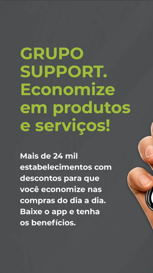 O Clube Support te dá descontos em compras online e em lojas físicas de todo o Brasil. Com o app do nosso Clube de Vantagens, você acessa as principais marcas do país e utiliza o desconto na hora de pagar, de maneira rápida e sem custo.