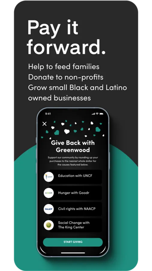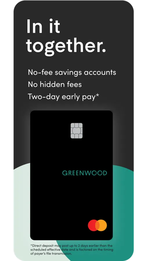 Greenwood is the new financial home for the Black and Latino communities. Become one of the 500,000+ who have joined the movement. When you open an account through Greenwood, you can save money, help the community, and get paid early.Greenwood is a financial technology company, not a bank. Banking services provided by Coastal Community Bank, Member FDIC. The Greenwood Mastercard® Debit Card is issued by Coastal Community pursuant to a license from Mastercard International.
