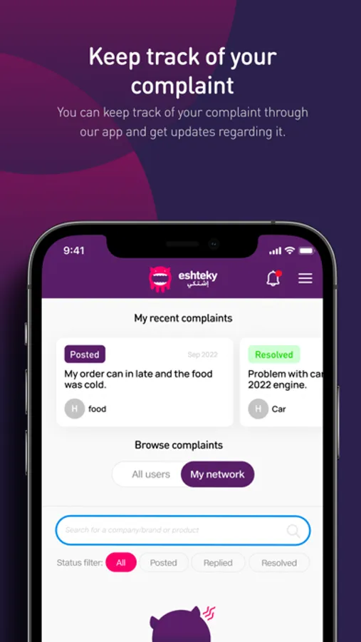 • Share your, or other users’ complaints, on other social platforms easily from eshteky