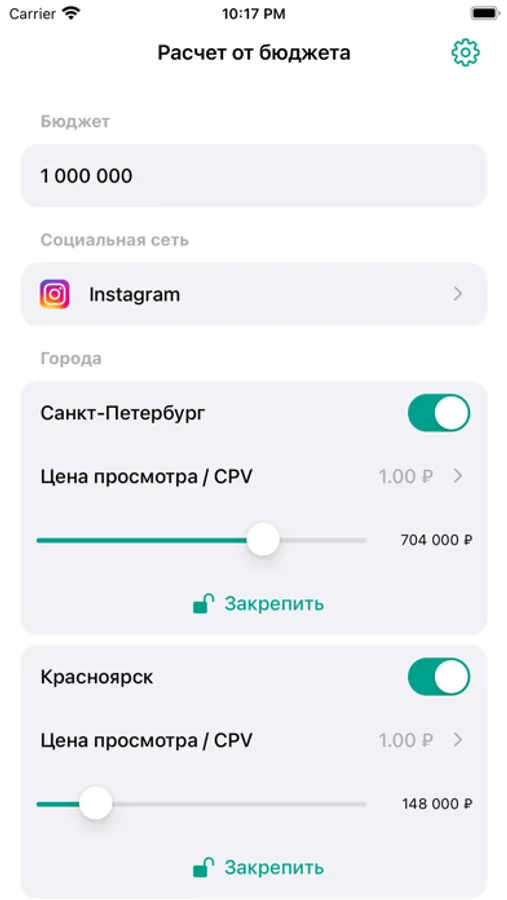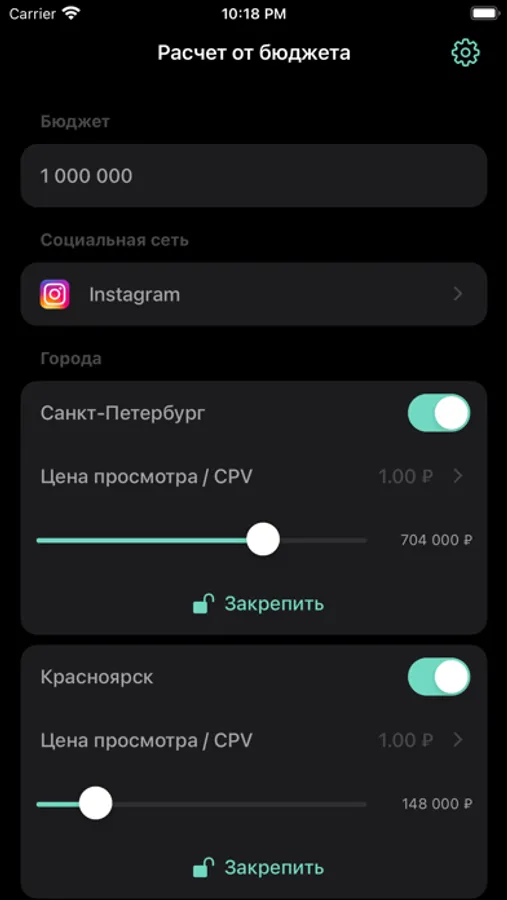 Приложение для расчета охвата аудитории при фиксированном выделенном бюджете. Будет удобно для тех, кто управляет бюджетом на рекламу у блогеров и может прогнозировать цену просмотра CPV.