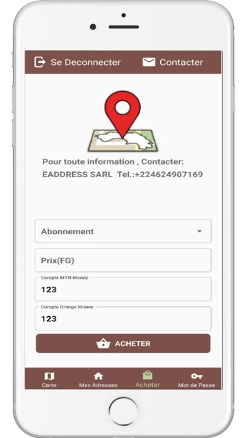Chaque utilisateur de l’application peut se créer un compte, acheter une ou plusieurs adresses par un système d’abonnement mensuel ou annuel. Grâce à ce système d’abonnement, vous pourrez être retrouvé partout et n’importe quand par d’autres utilisateurs de l’application.