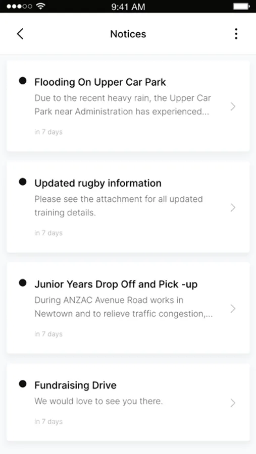 Notices: the Notices module provides Montessori Noosa with the ability to keep their community informed with important information, with push notifications for urgent school notices