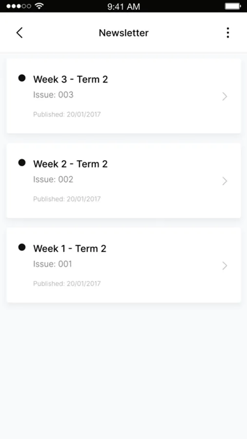 Newsletter: the Newsletter module allows Montessori Noosa to share electronic newsletters, directly to the app