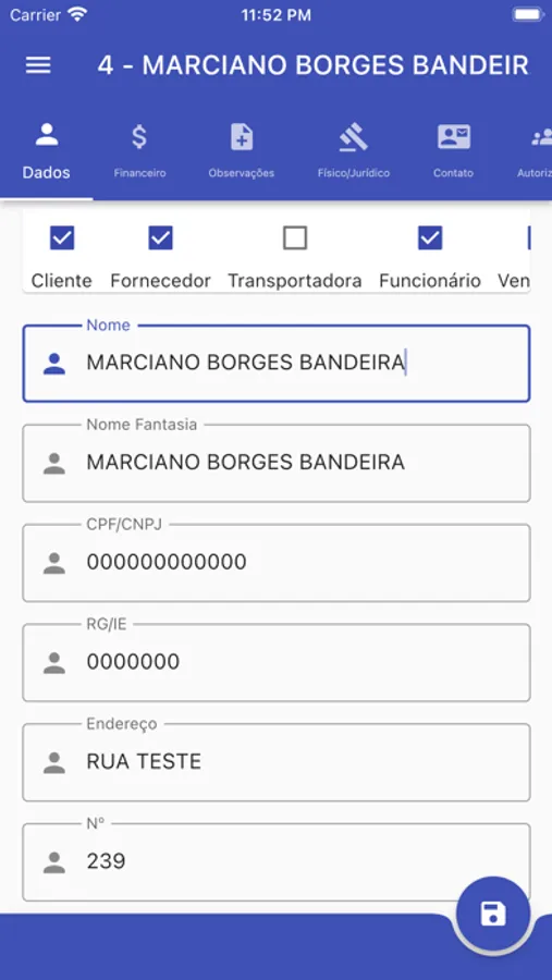 Clientes : Visualizar/atualizar o cadastro dos clientes ou criar um novo.