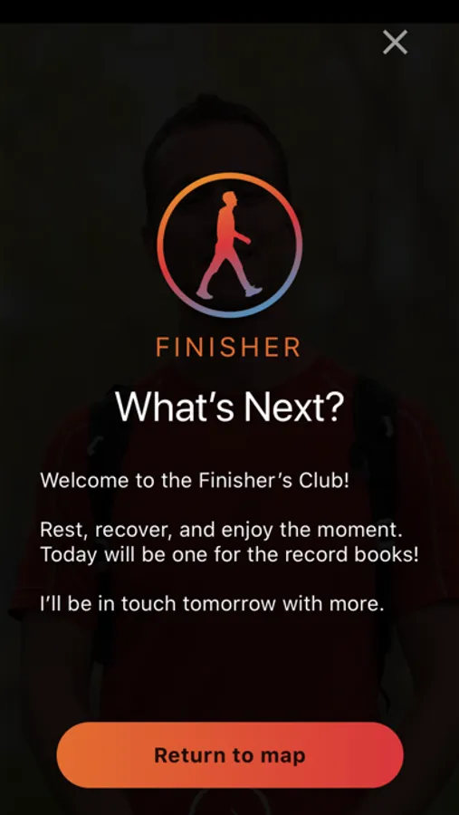 Using The 12-Hour Walk app to track your Walk is the only way to be counted as an Official Finisher. As an Official Finisher you will be able to connect with the global community of like-minded people who now possess a Possible Mindset™ and gain exclusive access to additional resources, events, and meet-ups led by Colin O’Brady.