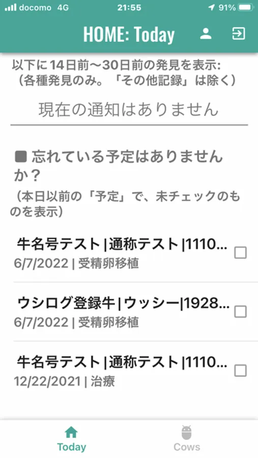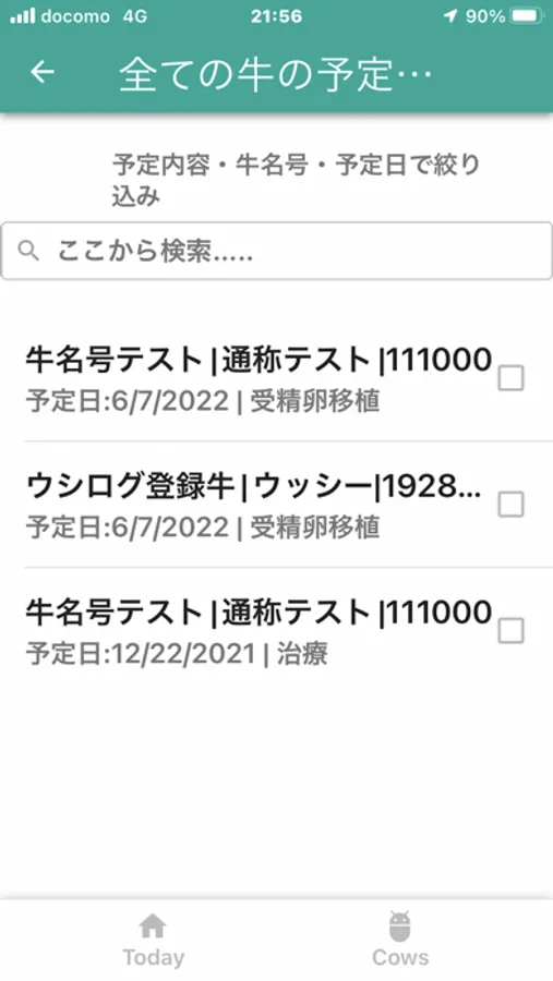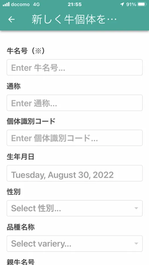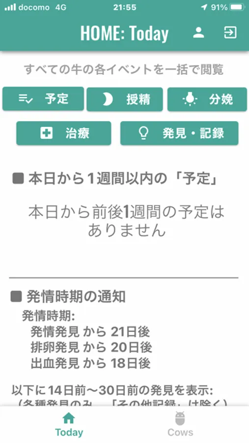 ■登録した牛個体に紐づく、下記5種のイベント内容の追加・編集・削除。各イベントには日時や支出金額などを記録可能。