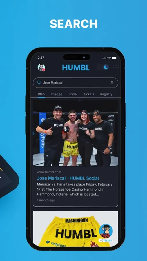 The HUMBL Wallet delivers a combined search engine, social media, digital payments, ticketing, merchandise and more. All in one convenient place for you.