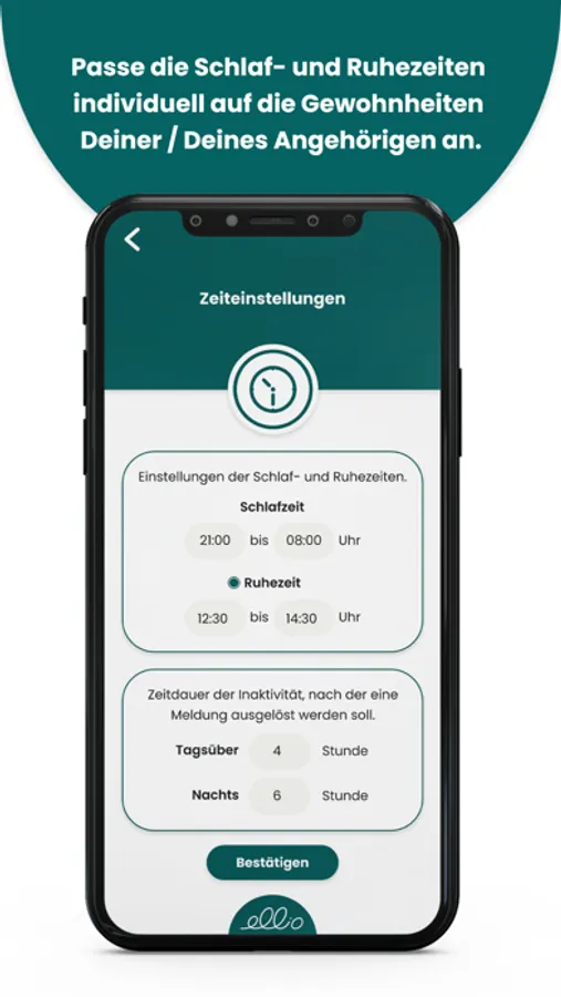 Legen Sie Schlaf- und Ruhezeiten fest, sodass ellio perfekt an Ihren individuellen Tagesablauf angepasst ist. So kann der Hausnotruf Ihre ausgewählten Familienmitglieder bestmöglich informieren.