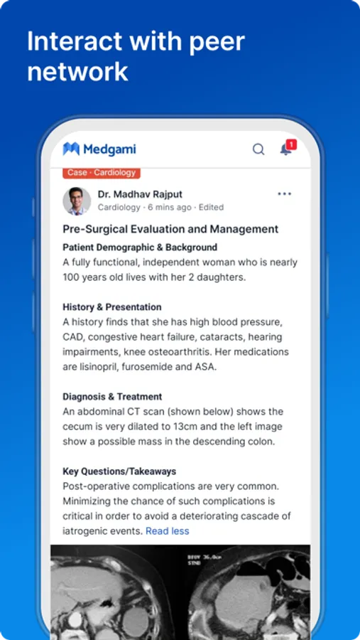 Medgami is a one-stop credible medical knowledge and a peer network platform that brings the best of medical learning content at doctors' fingertips to help them stay ahead, while offering a personalized experience with interactive features for doctors to connect with their patients better and to engage with their peer communities.