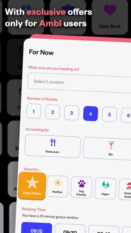 Introducing Ambl, the ultimate reservations app for last-minute dining and bar experiences.