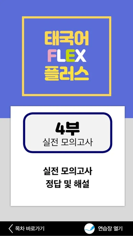 태국어 학습 목적 유무와 그 방향의 차이를 불문하고 현재 자신의 태국어 실력을 확인하고 점검할 수 있는 시험이 바로 태국어 FLEX시험인 만큼 이 교재는 시험을 준비하시는 분들을 위한 목적으로 집필하였습니다.