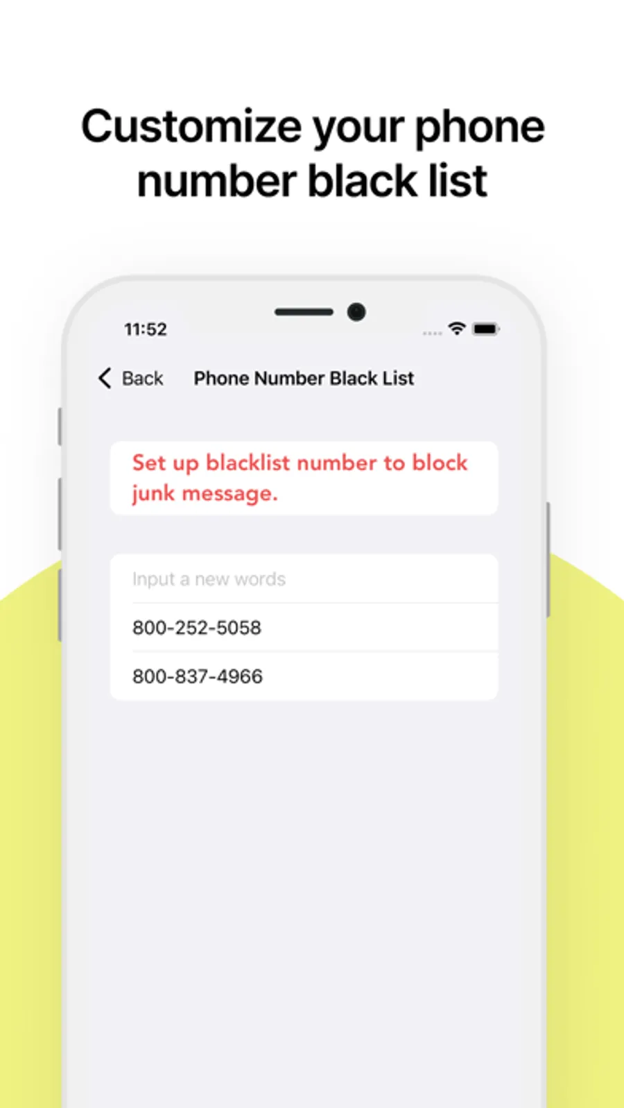* Block text messages by sender's phone number.