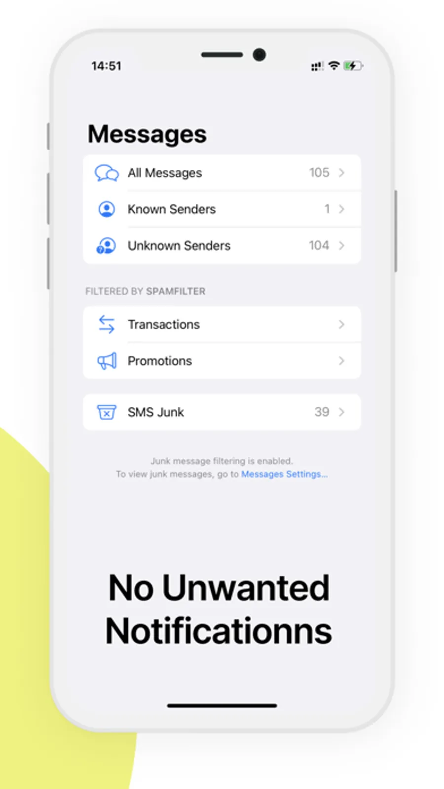 "SpamFilter uses statistical-based machine learning algorithms to learn from hundreds of thousands of SMS samples of all kinds. By identifying the semantic features of an SMS, it can accurately determine whether the received SMS is a normal SMS, a public service SMS or a spamming SMS, etc.