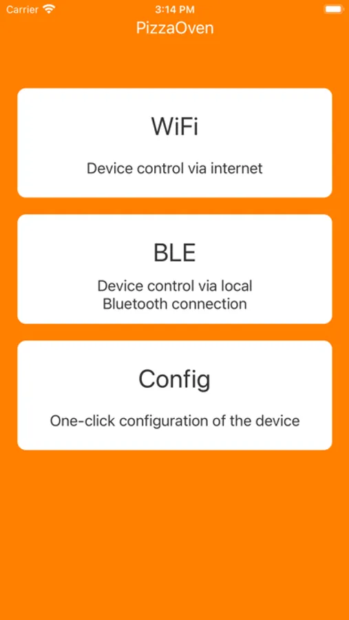 This is an application that controls and sets the pizza machine through Bluetooth. It can set the heating temperature and heating time of the pizza machine, and has the functions of configuring the network for the device.