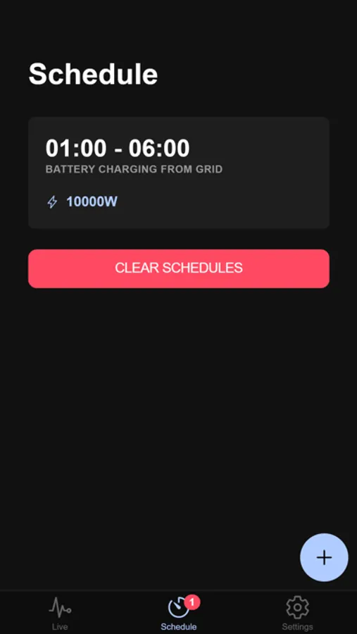 Setup schedules (charge events) for charging your battery from the grid e.g. at night or preventing battery discharge with a simple intuitive interface.