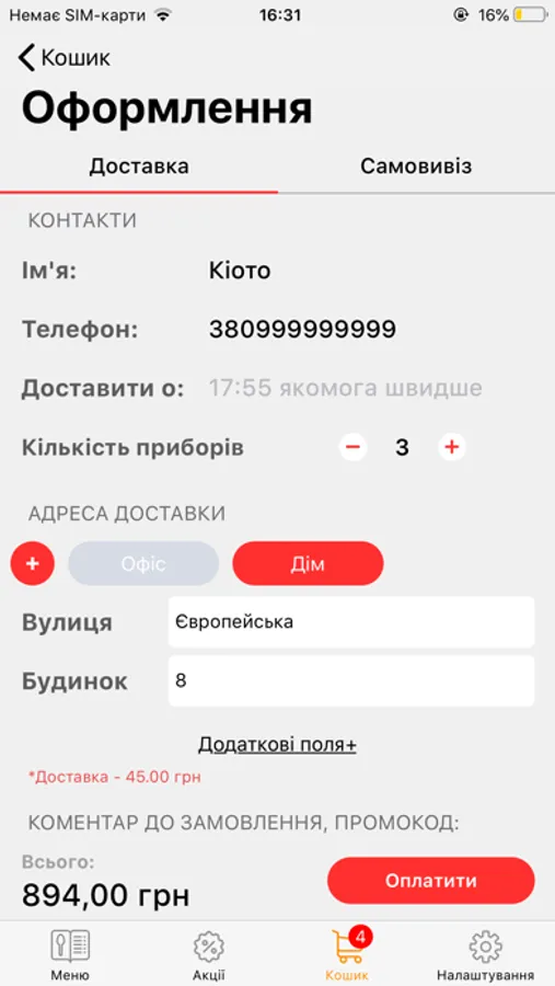• встановити бажаний час доставки замовлення за вказаною адресою;