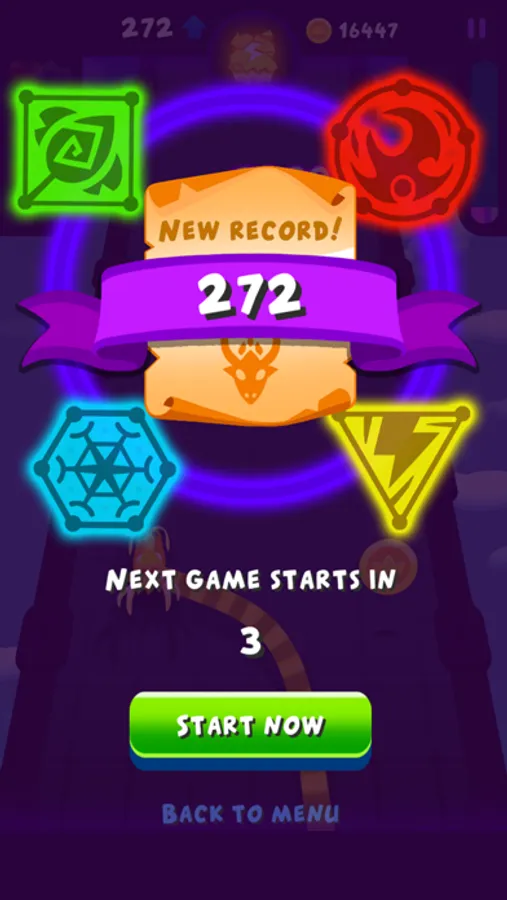Welcome to Dragon rush Elemental runner. In this offline running game you must harness the power of four natural elements to make your dragon go as far as possible. Be careful! The path of the dragon rush is full of obstacles that you must avoid. Identify the blocks that match your dragon’s elemental color, and avoid the blocks of the wrong color. Setting a new high score will be the ultimate test of your attention and speed