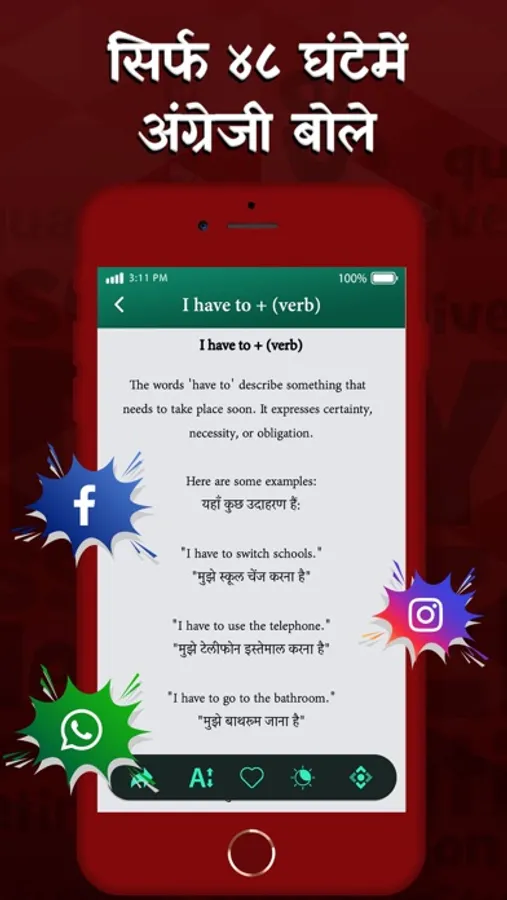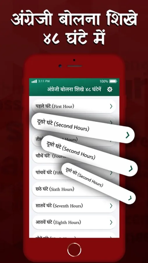 अंग्रेजी बोलने का कोर्स ४८ घंटा एक ऐसा ऐप है जो आपको हिंदी के माध्यम से हर अंग्रेजी पाठ सीखने की अनुमति देगा (हिंदी में अंग्रेजी बोलने वाला पाठ्यक्रम - ४८ घंटे)। यदि आप एक आसान हिंदी स्पोकन इंग्लिश कोर्स की तलाश में हैं, तो यह आपके लिए है।