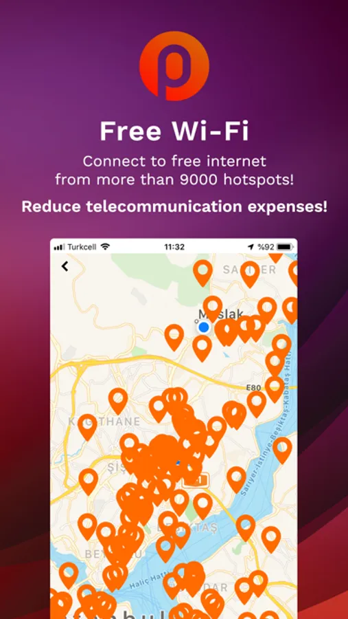 Free Wi-Fi: One of the most important features of Free Wi-Fi is to reduce your communication expenses. Thanks to Pointcy Free Wi-Fi, you will make free phone calls and internet connection and reduce your travel costs. You can use your own number and stay in touch with your friends without having to buy a temporary GSM line at more than 9,000 hotspot points.