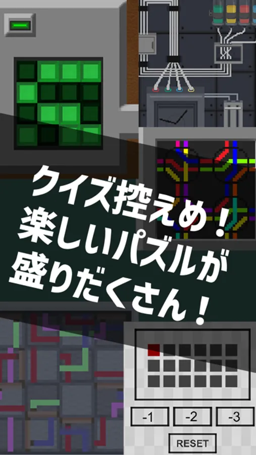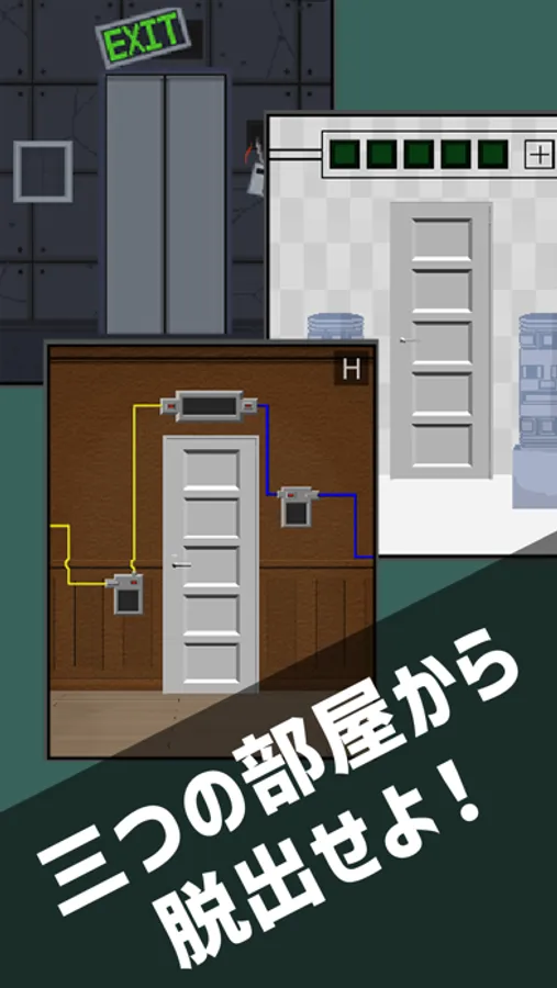 三つの部屋から脱出するゲームです。謎解きやクイズのような問題に加え、楽しいパズル系ギミックがたくさん遊べます。