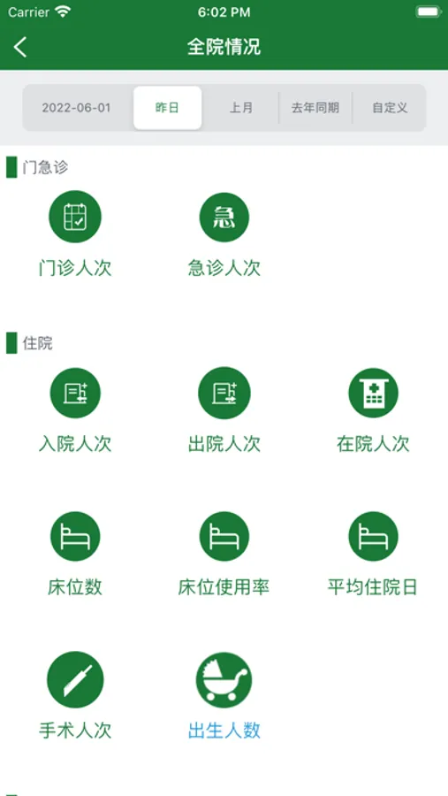 院长日报支持登录用户查看全院数据,可自定义查询时间筛选数据。
