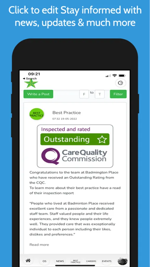 The Outstanding Society (OS) App is a resource for sharing and celebrating best practice and helping others to improve within the sector. The app is available to anyone wanting to learn more about the amazing Nursing and Career opportunities within Social Care & to share lessons that can help everyone continue to improve.
