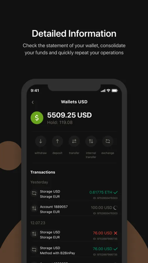 Mobile app that provides Dashboard with all the key information, fast deposits, withdrawals, transfers, accounts opening. You can secure your app with 2FA upon entrance. This and many more features are included!