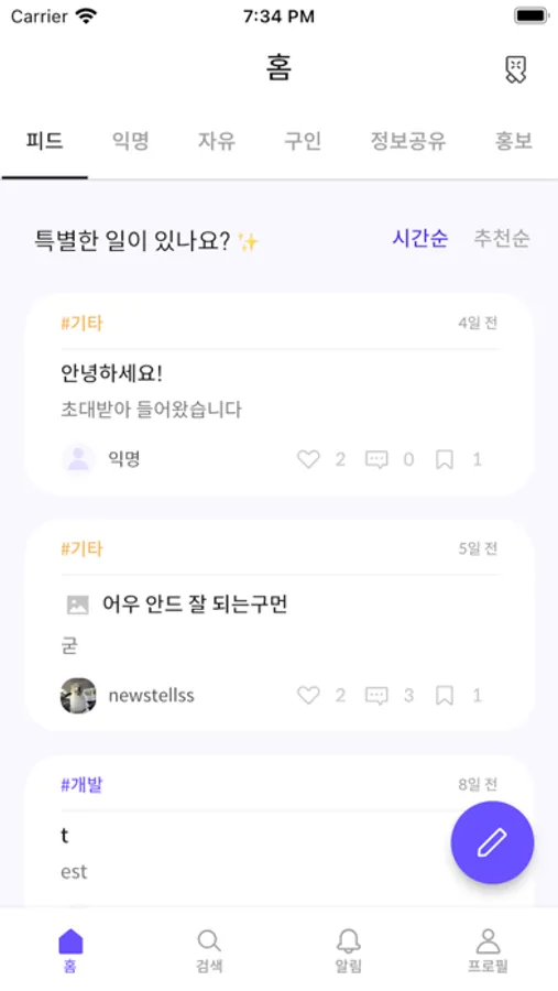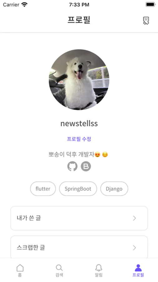 Guam은 IT 커뮤니티로서 (예비) 개발자/디자이너/기획자들의 소통 창구 역할을 합니다. 이용자들은 프로필 설정 시 자신의 관심사, GitHub 및 블로그 주소를 저장하여 다른 이용자들에게 자신의 개발 능력을 자랑할 수 있습니다. 더불어, 특정 주제(개발, 기획, 디자인, 데이터분석 등)에 대해 게시글과 댓글을 작성할 수 있으며, 쪽지 기능으로 상대방과 1:1 대화를 이어가기도 합니다.