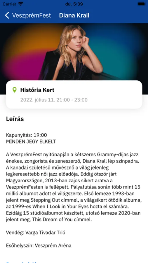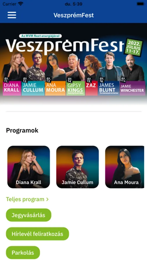 A VeszprémFest 2004-ben indult prémium zenei fesztivál. Missziója a kezdetektől fogva változatlan: legyen vidéki végvára a világszínvonalú zenei produkcióknak a jazz, a világzene, a pop vagy akár az opera világából, és – még ha csak egy-két napra is – de otthonul szolgáljon azoknak a sztároknak, akik otthonosan mozognak Európa és a világ színpadain. A 18. alkalommal megrendezett VeszprémFest 2022-ben július 11-16. között várja látogatóit: fellép Diana Krall, Jamie Cullum, Ana Moura, a Nicolas Reyes vezette The Gipsy Kings, ZAZ, James Blunt és Jamie Winchester.