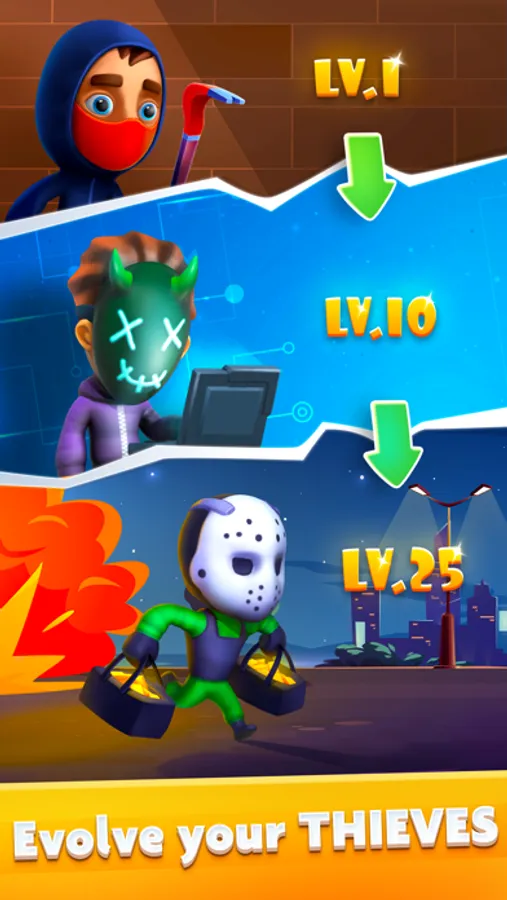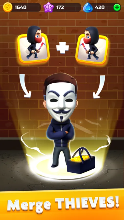 Moreover, it's not just an idle money clicker. Are you a fan of merge games? Do you like to merge dragons, planes, goblins, plants, food, or maybe merge people? In our bank heist idle simulation game you got to merge robbers to be best of the best!
