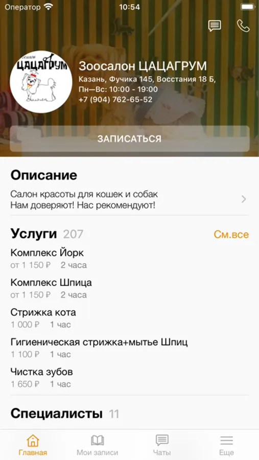 Запись в салон стала ещё удобнее! Больше не надо звонить и искать, сеть груминг салонов ЦАЦАГРУМ в вашем телефоне.