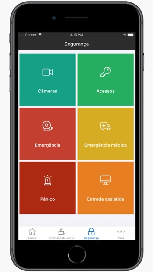 Possibilidade de convidar os amigos, visualizar as câmeras, abrir as portas e ser notificado quando seus amigos chegarem no Condomínio.