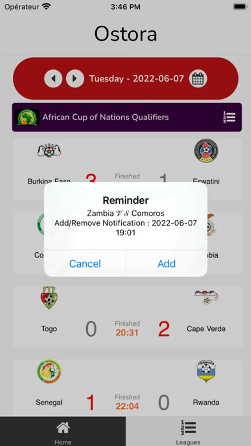 - Add your match that you want to follow carefully to receive kick-off notifications and reminders.