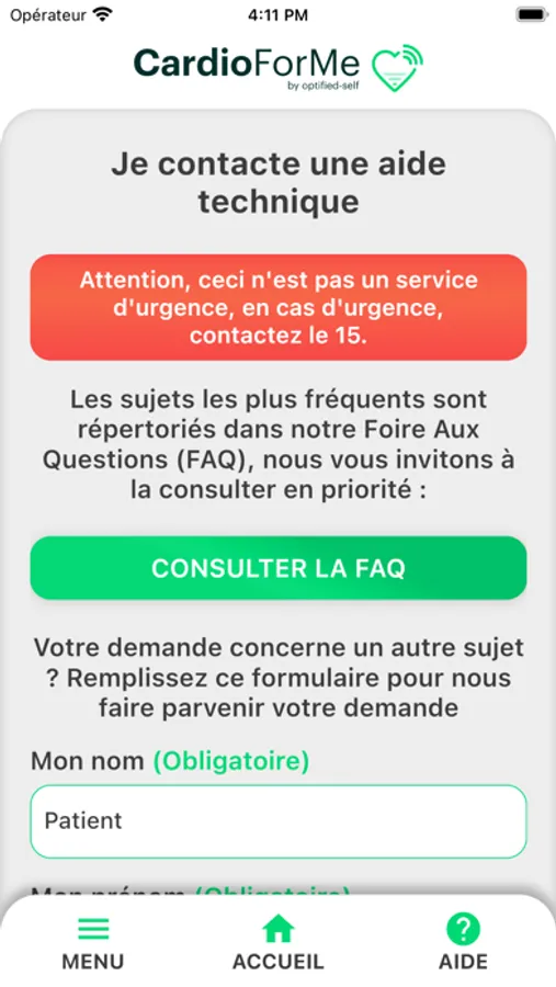 Attention CardioForMe n'a pas été prévu pour diagnostiquer, empêcher l'insuffisance cardiaque, ou pour être substitué à un professionnel de santé.