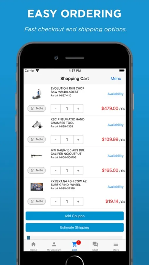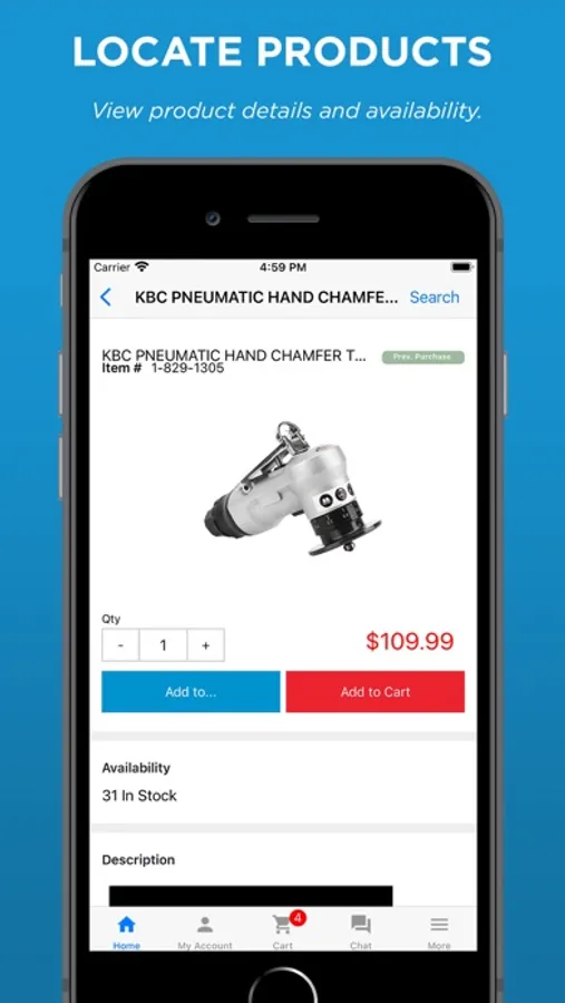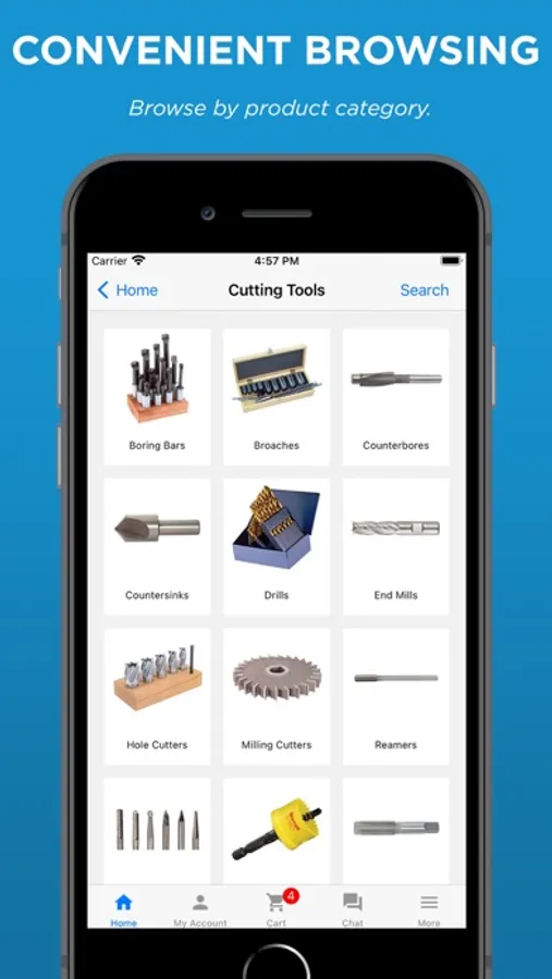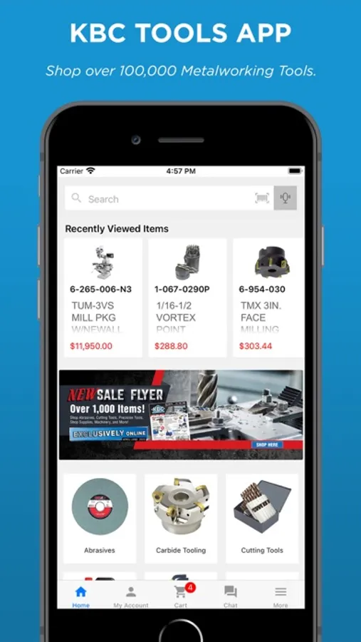 Shop 100,000 items online from the convenience of the KBC Tools & Machinery app!