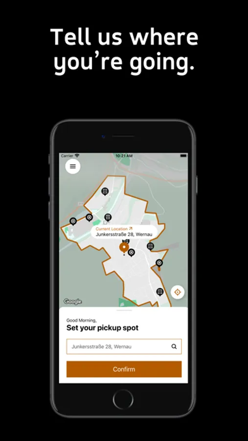 Your FlexMobil is "on call" for you. In the evening, it supplements the existing bus lines in Wernau. You get on and off the bus at fixed stops. This can be a bus stop or a individual stop such as an intersection or a tourist attraction. The app automatically navigates you to one of the many stops in the city. For each booking, the optimal boarding point near your starting point is picked out.