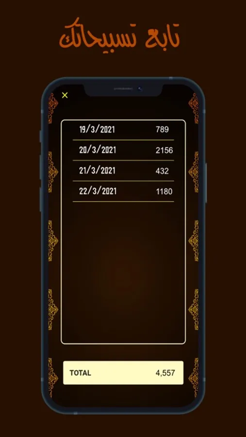 - A Stats page that tracks your Total Tasbih daily, the statistics Table shows you the Date and Total Tasbihat.